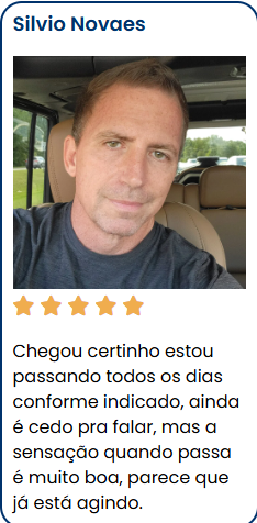 Os depoimentos apresentados são de clientes reais, mas não garantem os mesmos resultados para todos. O uso do produto é de responsabilidade exclusiva do consumidor.