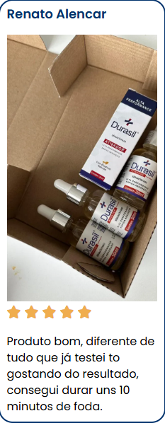 Clinicamente Testado e Aprovado Tratamento com Durasil oferece até 48 minutos a mais na relação, e sem causar desconforto a você e a sua parceira. O tratamento pode ser feito no conforto de casa todos os dias ou até mesmo durante a relação. Você pode falar para sua parceira que é um novo lubrificante e ela nem saberá que é um potente inibidor ejaculatório.